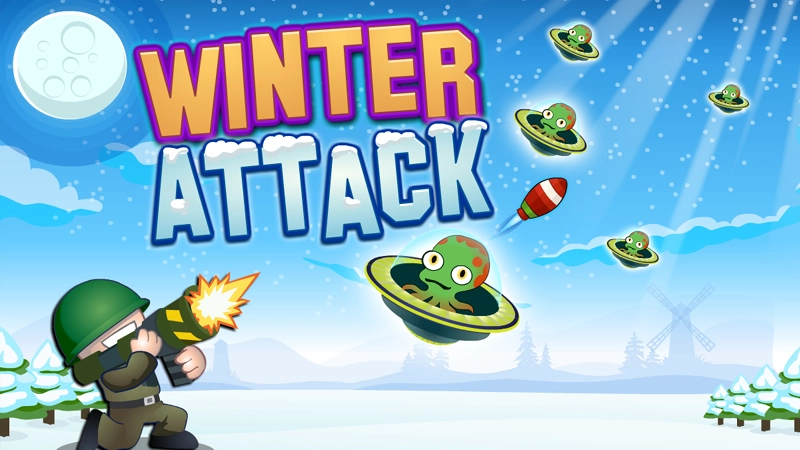 Shoot all the winter aliens in as less shots as possible. Ain and click to shoot. Switch between shots and bombs at the bottom.
